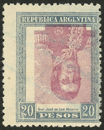 1918 20c. San Martín DOUBLE IMPRESSION variety, MNH (+50%), excellent! (Image)