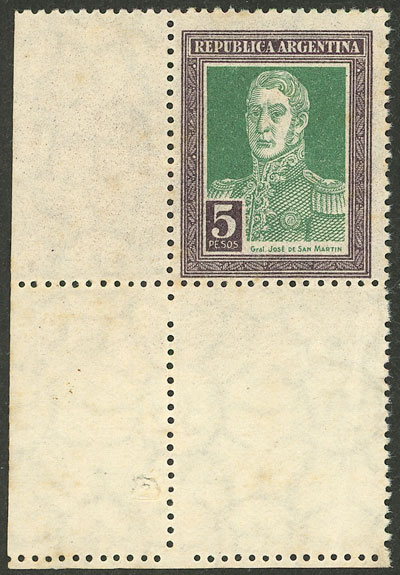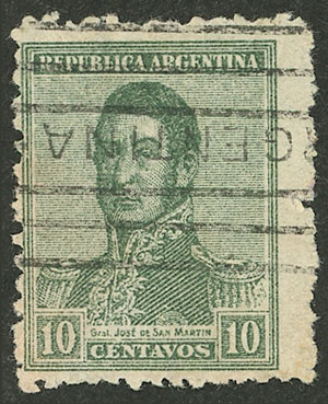 1918 10c. San Martín perforation 13½ x 12½ with W.BOND watermark, VF quality, very rare with this perforation! (Image)