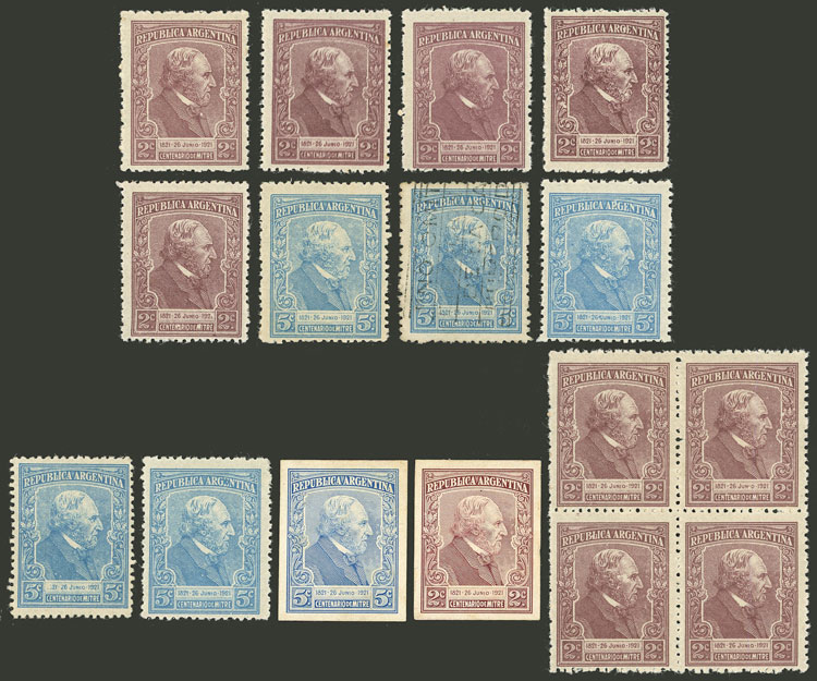 526a + 526b + 526c + 526d + 526e + 527c (used) + 527d + 527e + 527f, 1921 Mitre, the set of 2 values + varieties, also 2 color proofs, VF quality! (Image)