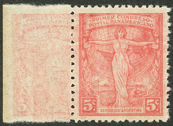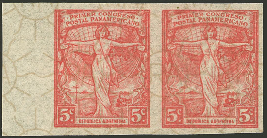 1922 Postal Congress with the watermark printed on front, fantastic IMPERFORATE PAIR, VF quality, extremely rare! (Image)