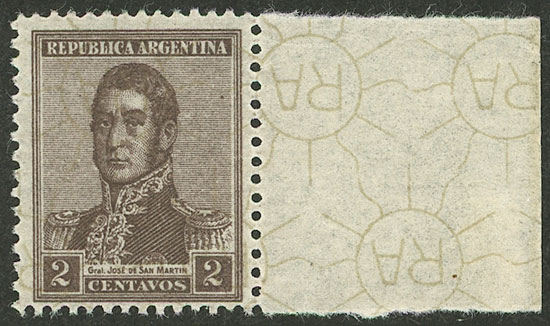 1922 2c. San Martín with the watermark printed on front INVERTED, MNH (+50%), excellent! (Image)