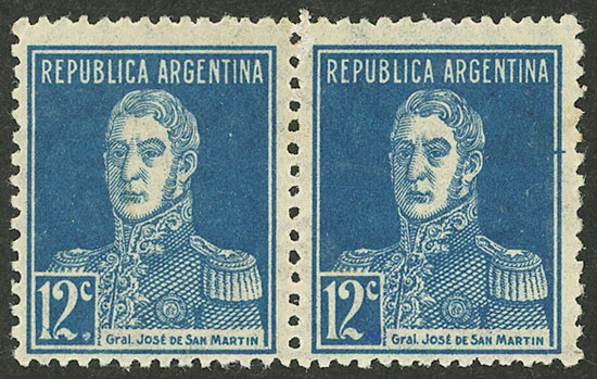 1924 12c. San Martín, pair with and without period, MNH (+50%), VF quality! (Image)