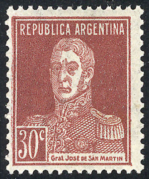 30c. San Martín, typographed, unused, without gum, VF quality (Image)