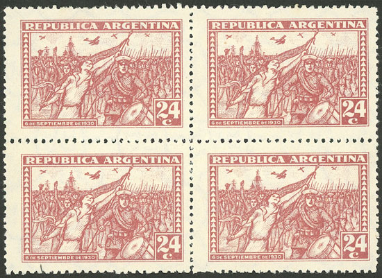 24c. Revolution of 6 September 1930, unused block of 4, without gum, VF (Image)