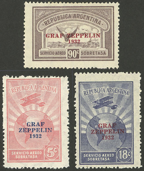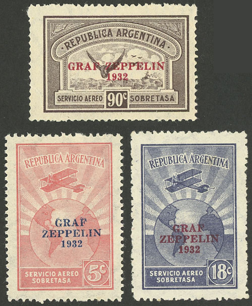 GJ.720/2, airmail, Zeppelin 5th flight of the year, cmpl. set of 3 values, VF (Image)