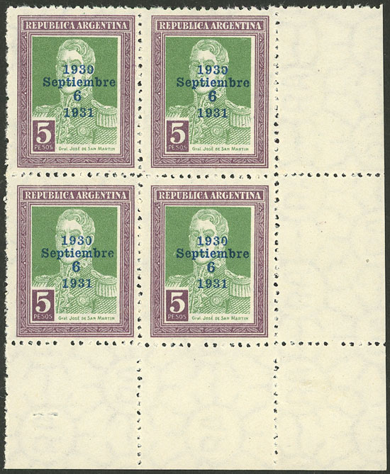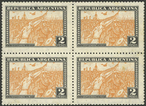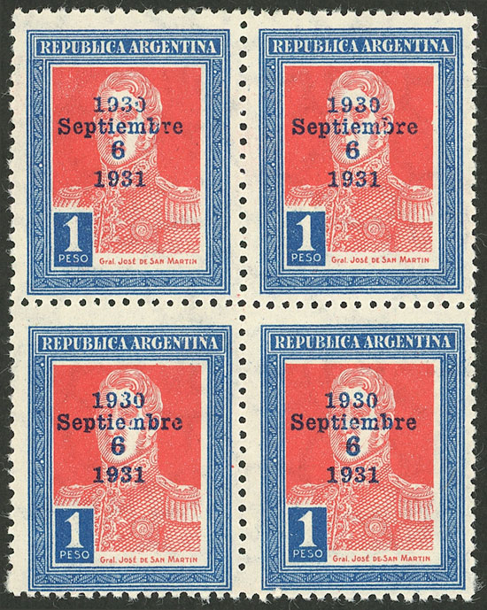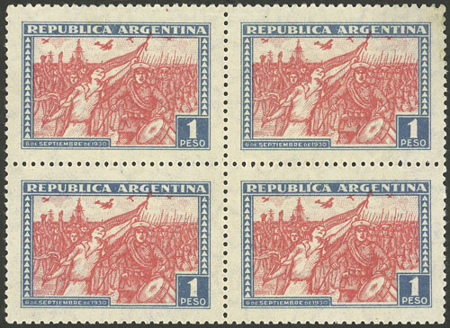 1P. Revolution of 6 September 1930, block of 4, 2 lightly hinged and 2 MNH, VF (Image)