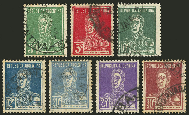 GJ.708/14, San Martín, typographed, cmpl. set of 7 values, VF (Image)