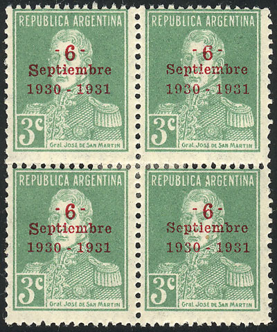 2P. Revolution of 6 September 1930, block of 4, VF (Image)
