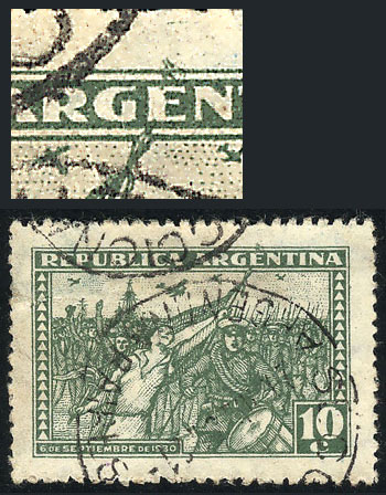 10c. Revolution of 6 September 1930, with variety: Spot above the 'E' in ARGENTINA, used, VF quality (Image)