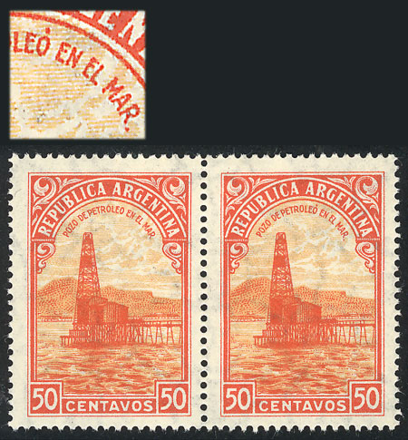 50c. Petroleum, pair, one with variety: Accent on the first "Ó" of "PETRÓLEO" and period after "MAR", VF quality (Image)