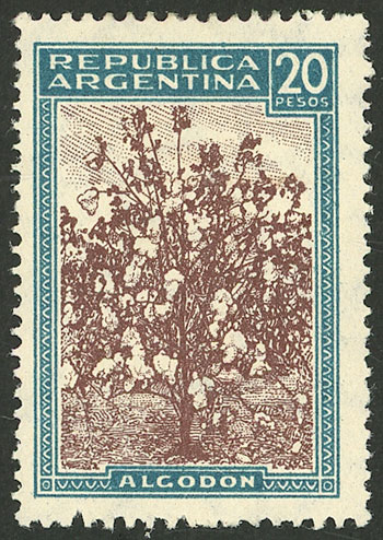 20P. Cotton, green-blue and chestnut, VF (Image)