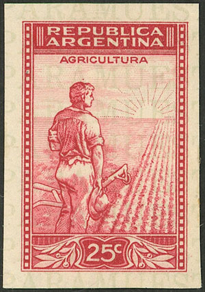 25c. Plowman, proof in carmine, on special paper for specimens, VF (Image)