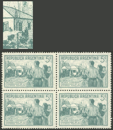 5c. 1st Pan-American Housing Congress, block of 4, one with variety: Cut tree, VF (Image)