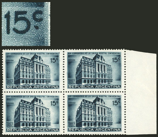 15c. UPU Congress, block of 4, one with variety: "15c." with period (MNH), sheet margin, VF (Image)