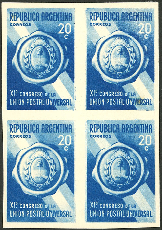 20c. UPU Congress, proof in blue (adopted), block of 4 (Image)