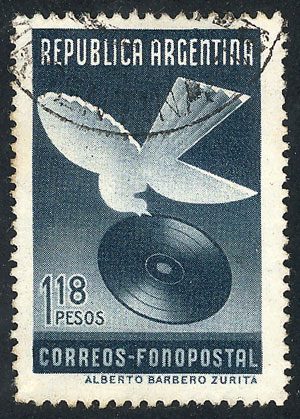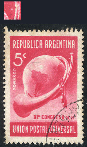 5c. XIº UPU Congress, with variety: white spot between the horn and the globe, used (Image)