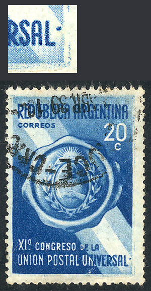 20c. XIº UPU Congress, with variety: spot at right of the "L" in UNIVERSAL, used, VF quality (Image)
