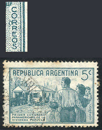 5c. 1st Panamerican Housing Congress, with variety: first "R" in CORREOS defective, used, VF quality (Image)
