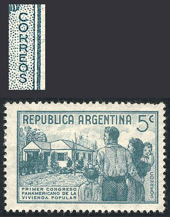 5c. 1st Panamerican Housing Congress, with variety: first "R" in CORREOS broken, VF quality (Image)
