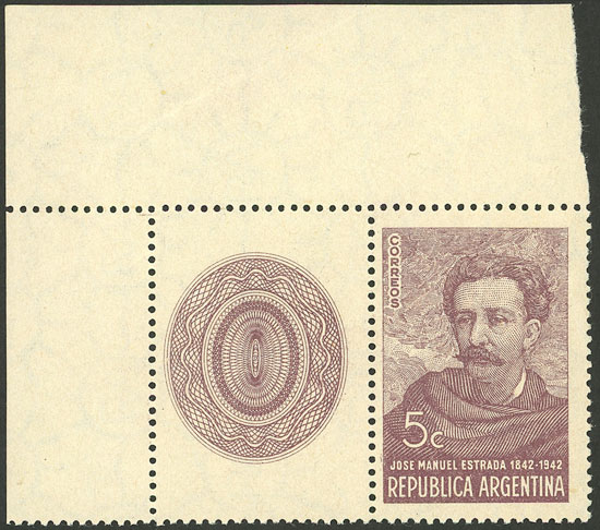 GJ.856CZ, 5c. Estrada, with label showing medalion at left, sheet corner, MNH (Image)