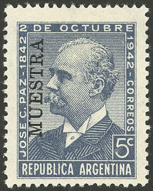 5c. José C. Paz, with "MUESTRA" ovpt., VF (Image)