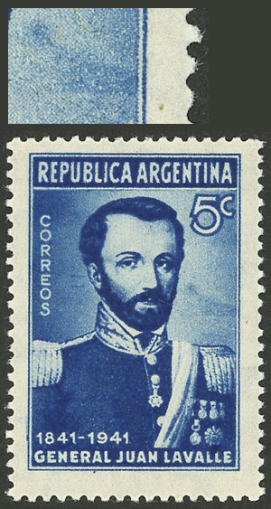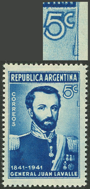 5c. Juan Lavalle, with variety: Blue spot on the background, VF (Image)
