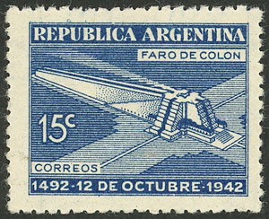 15c. Discovery of America 450 years, round sun wmk, VF quality (Image)