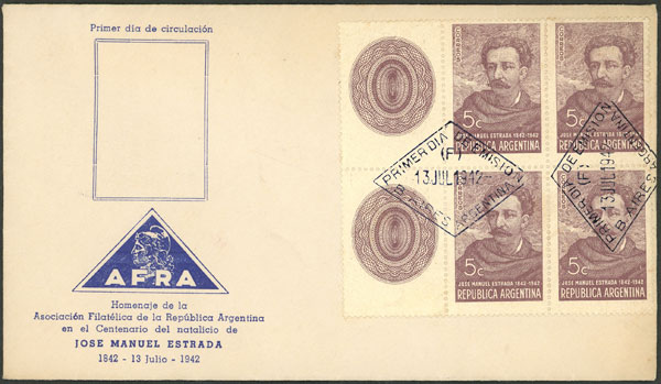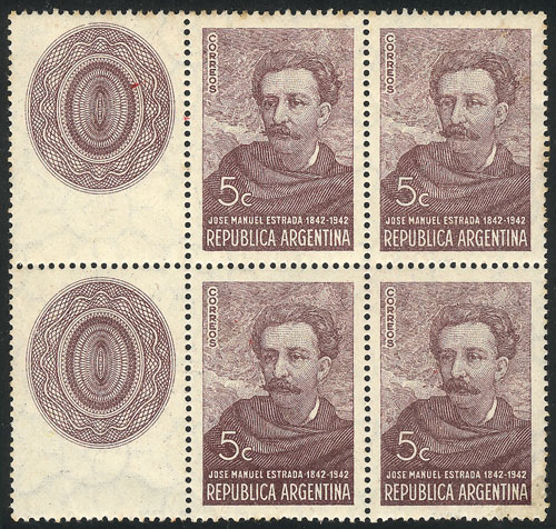 5c. Estrada, block of 4 with 2 labels at left, unused, no gum, VF quality (Image)