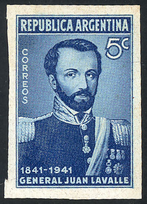 5c. General Juan Lavalle, proof in blue (adopted) printed on glazed paper, VF quality (Image)