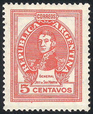 5c. San Martín, round sun wmk, with variety: Curl on the forehead, VF (Image)