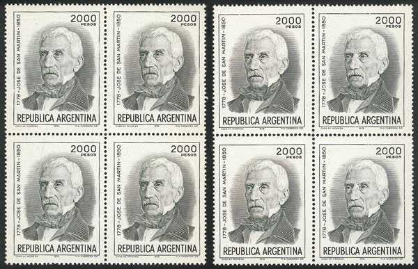 + 1796a, 2000P. San Martín, with Casa de Moneda wmk, blocks of 4 on ivory and white papers, VF quality (Image)