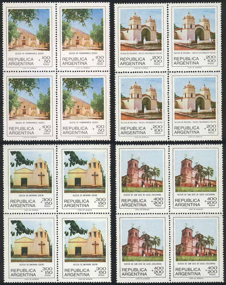 + 1894, Filatelia Argentina, northern churches, cmpl. set of 4 values in blocks of 4, VF (Image)