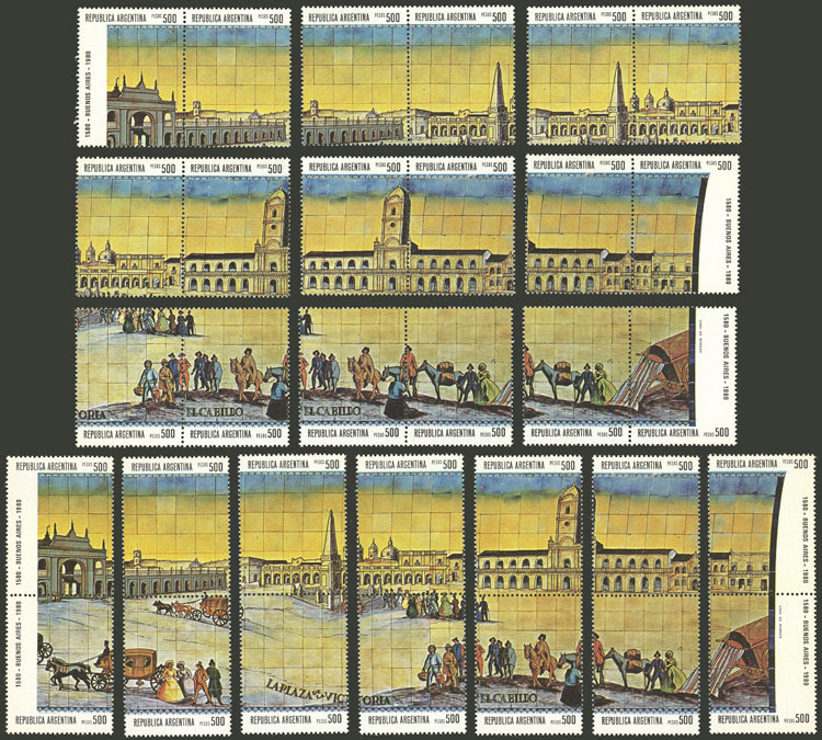 GJ.1917/90, Buenos Aires 400 years, all the possible combinations of pairs from souvenir sheet GJ.HB 42 (19 in total), VF (Image)
