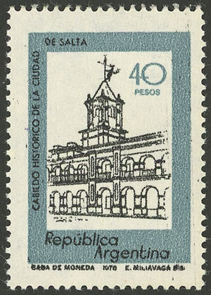 GJ.1783N, 40P. Salta city hall, unsurfaced paper UV neutral ON BOTH SIDES, rare, VF (Image)