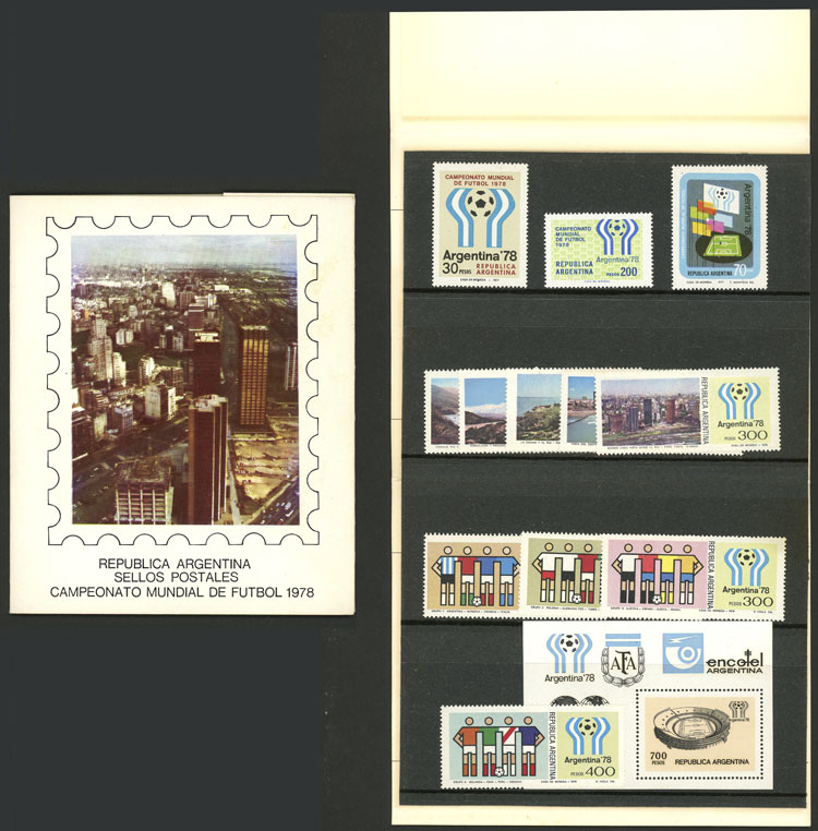 GJ.1796/70 + 1788 + 1806/10 + 1814/17 + HB 27, small folder issued by the Post with commemorative stamps and souvenir sheets of Argentina 1978 Football World Cup, VF quality (Image)