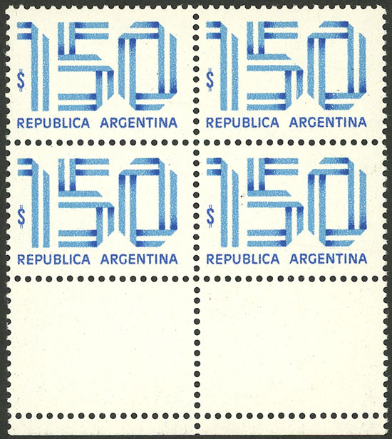 GJ.1860CJ, $150 Ribbons, phosphorescent unsurfaced paper, block of 4 with 2 labels below, VF (Image)