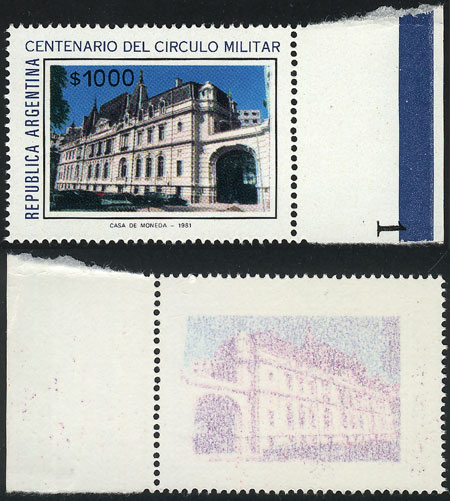 $1000 Círculo Militar, sheet margin, offset impression on back, VF quality (Image)