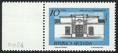 10P. House of Tucumán, chalky paper, large printer imprint, VF quality (Image)