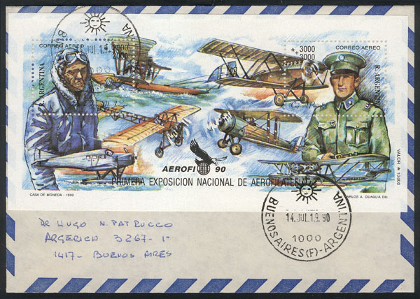 airmail, Aerophilately expo, s.sheet on cover used in Buenos Aires on 14/JUL/1990, VF (Image)