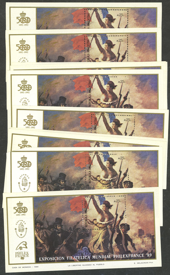 78a, French Revolution 200 years, 11 s.sheets with variety: Double impression of gold color, overlapping, VF (Image)