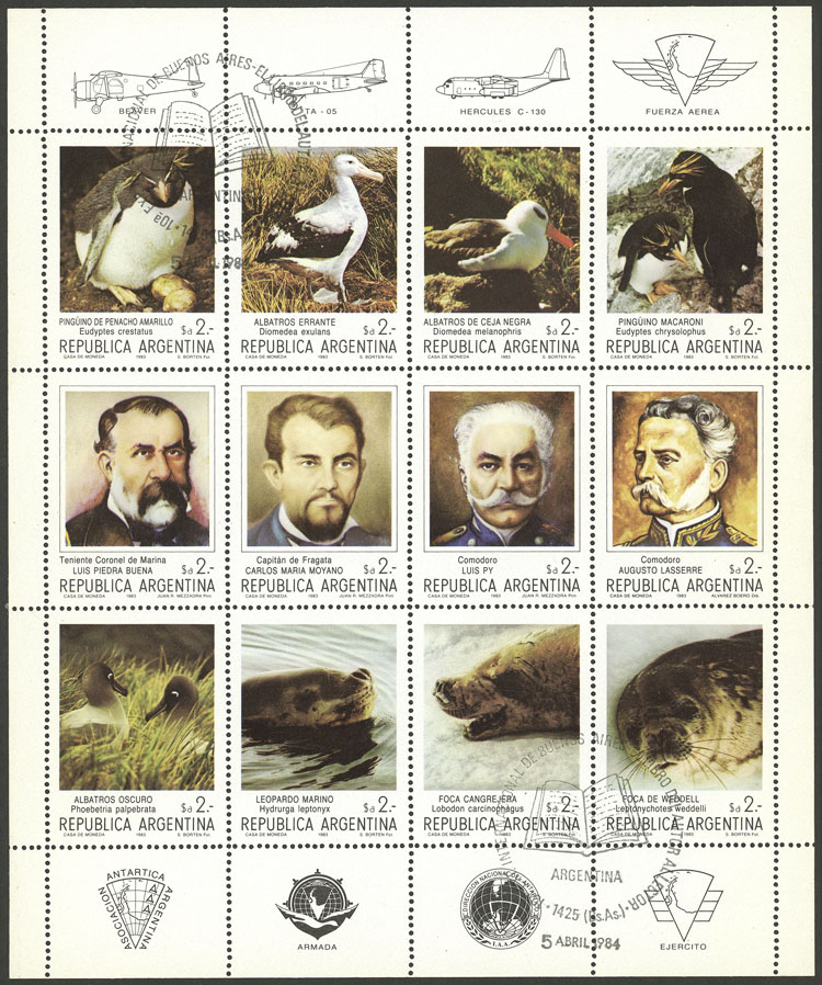50, Antarctic fauna & pioneers, with postmark commemorating the 10th Intl. Buenos Aires exhibition "Books - From the Author to the Reader" 5/AP/1984, VF (Image)