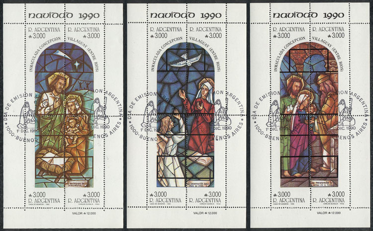 94/96, Christmas, set of 3 souvenir sheets with first day postmarks, VF quality (Image)