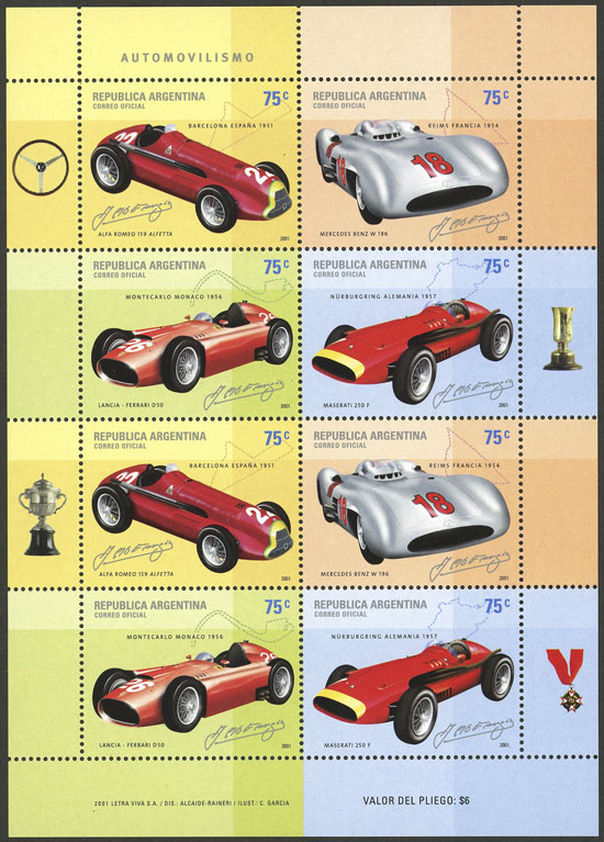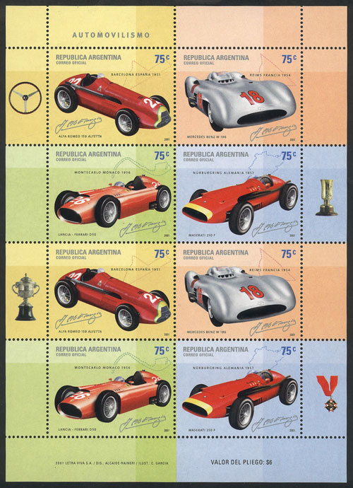 Car Racing, sheet with 2 sets, VF quality (Image)