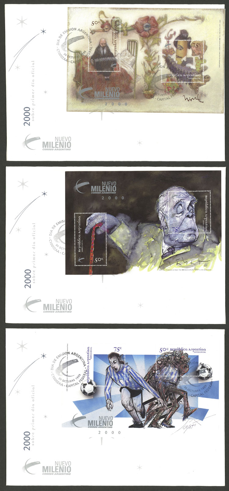123/5, New Millenium, cmpl. set of 3 s.sheets, on FDC covers, VF (Image)