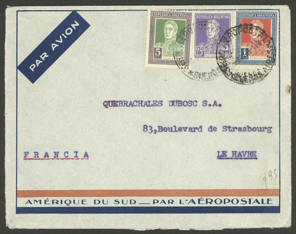 26/AU/1933: Buenos Aires - Le Havre (France), airmail cover franked with $6.25, VF quality (Image)
