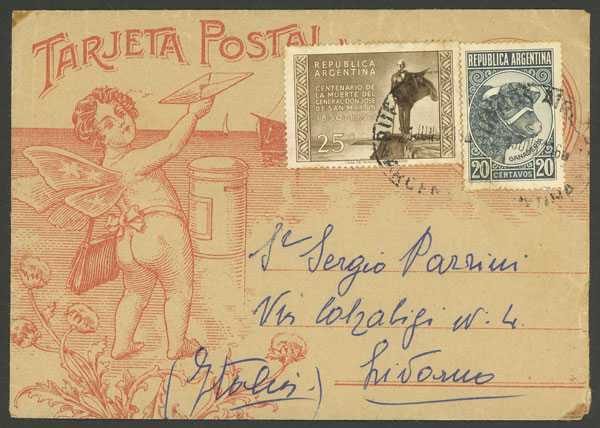 21/JUL/1951: Buenos Aires - Livorno (Italy), cover franked with 20c. Bull + 25c. Centenary of San Martín, VF quality (Image)