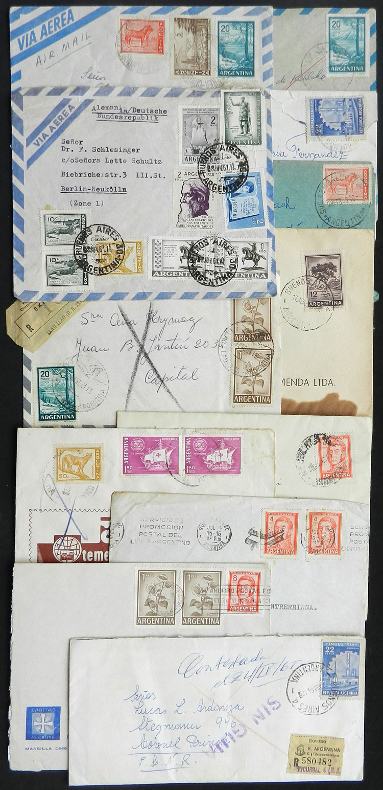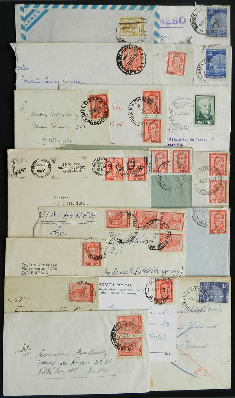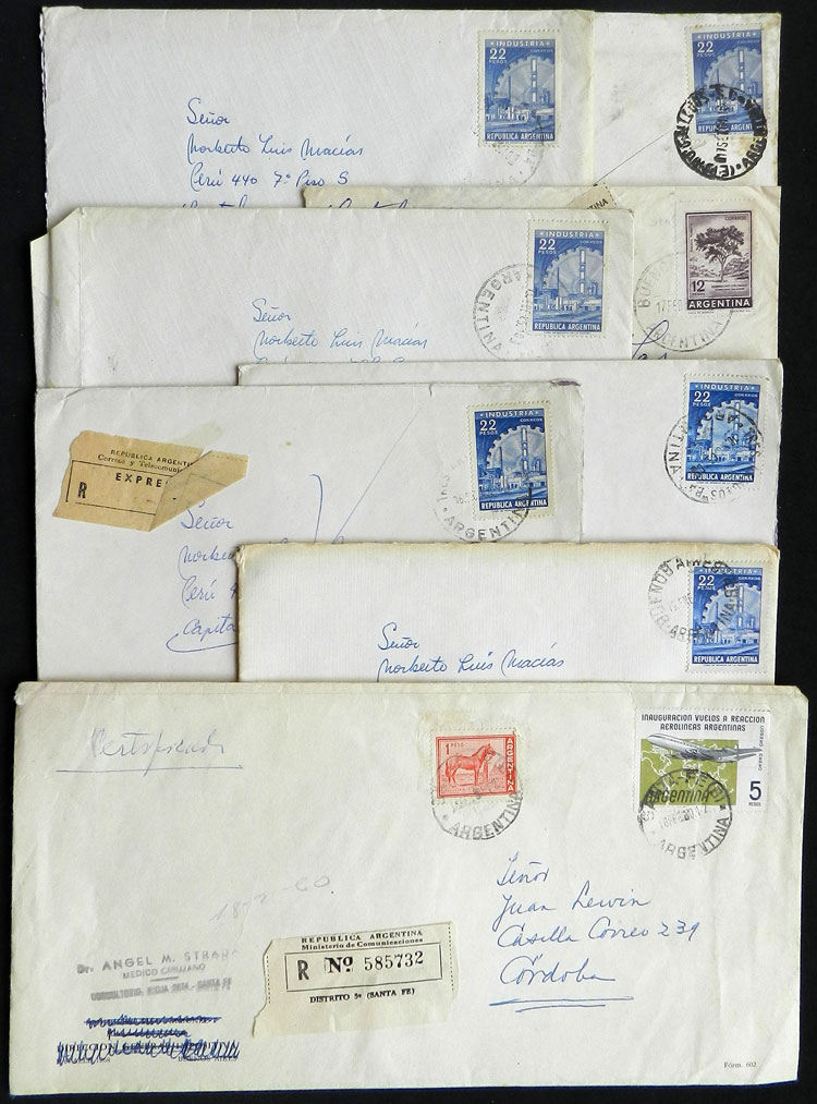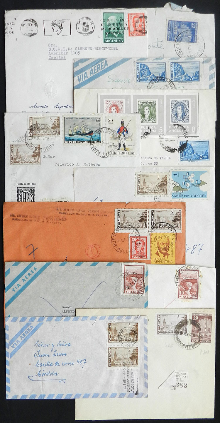 Covers and cards posted between circa 1959 and 1965 from different places in Argentina, postages formed with stamps from the basic issue Proceres & Riquezas II (2nd part)