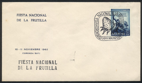 Strawberry Festival, cover with special postmark, posted in Coronda (Santa Fe) on 10 or 11/NO/1962 (Image)