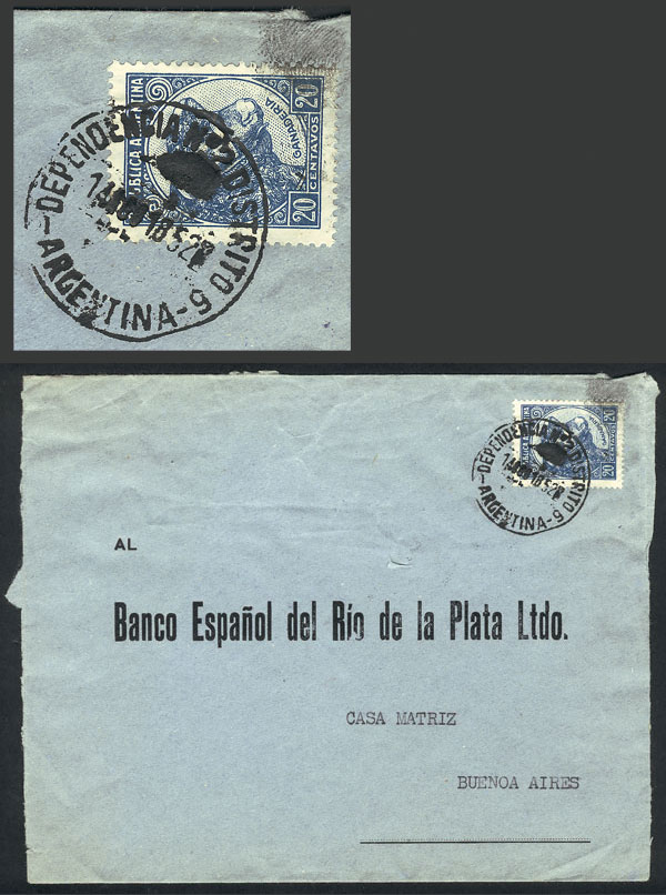 Cover sent to Buenos Aires on 14/AU/1952, cancelled "DEPENDENCIA Nº2 DISTRITO 6" and franked with 20c. Bull (GJ.873) (Image) (Image-02)