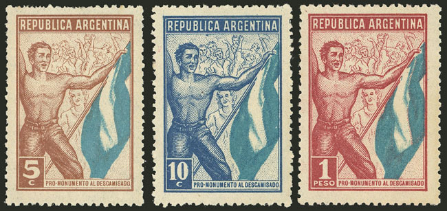 1021   image5c, 10c. and 1P. Monument to Descamisado, VF (Image)